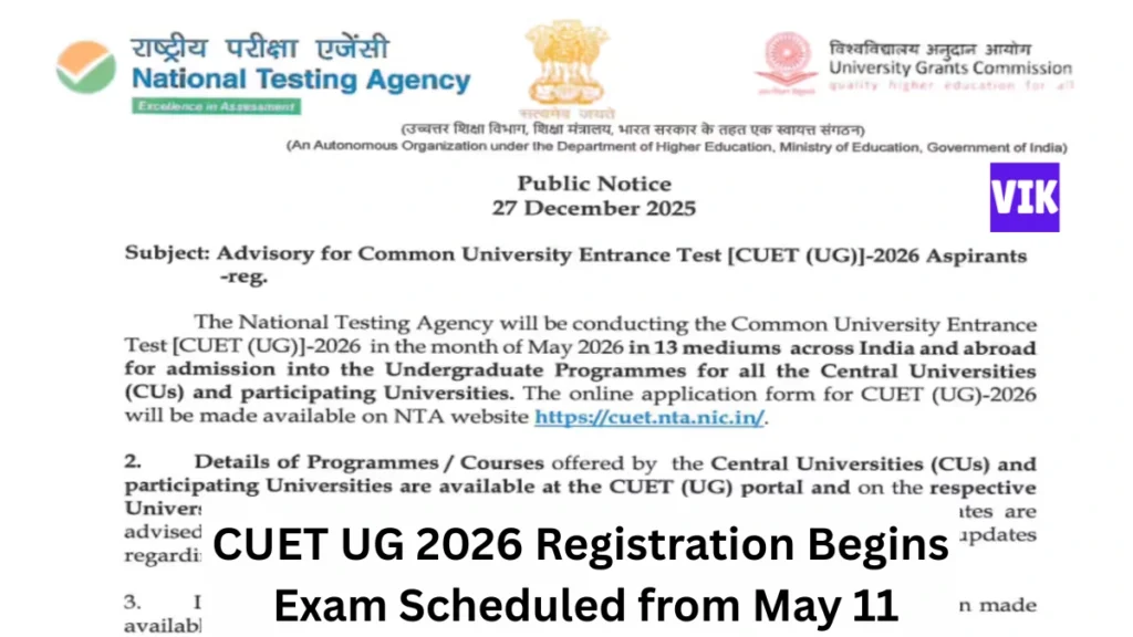 सीयूईटी परीक्षा आवेदन 2026 – 30 जनवरी तक कर सकते हैं आवेदन | cuet application form 2026 | CUET UG 2026 | cuet ug 2026 exam date
